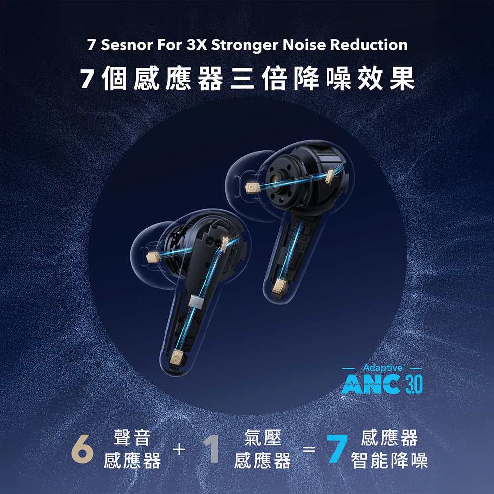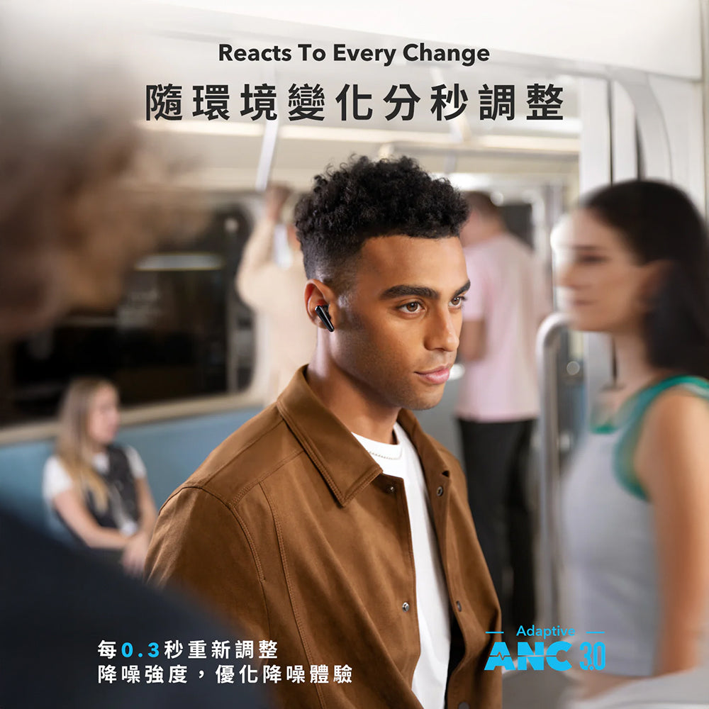 ・Adaptive ANC 3.0 透過每0.3秒實時演算環境並根據環境噪音主動調至合適的降噪強度