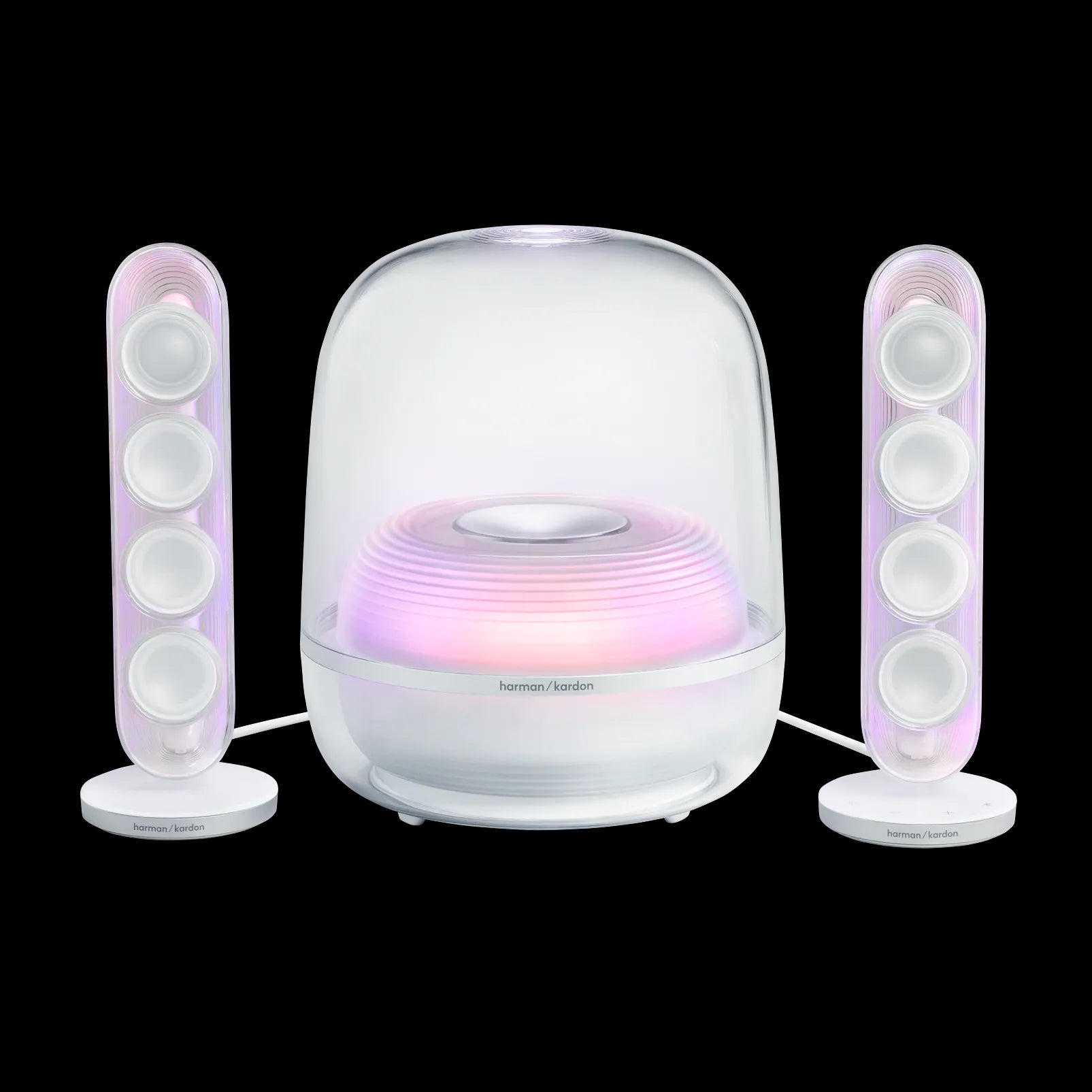 無論是與好友共進晚餐時,讓音樂如交談般自然流淌;或是二人浪漫之夜,以精選歌單與流動光暈共築溫馨氛圍。其標誌性透明穹頂與流線型曲線,為空間注入恆久美感,動態光影秀;繽紛色彩隨樂律動,讓聆聽體驗與情緒深度共鳴。除經典設計外,SoundSticks 5 更透過 Bluetooth® 藍牙技術締造卓越的 2.1 聲道音質:渾厚低音、靈動中頻與清透高頻相得益彰。以無可比擬的豐富層次與細膩表現,昇華音樂魅力。無論是週末清晨獨享寧靜,還是即興家庭派對,皆游刃有餘。透過單線 HDMI ARC 連接,即可體驗細節盡現的動態音效,為影視欣賞、串流媒體娛樂及遊戲場景注入沉浸式聲場。盡情感受 Harman Kardon SoundSticks 5 非凡的聲學魅力!