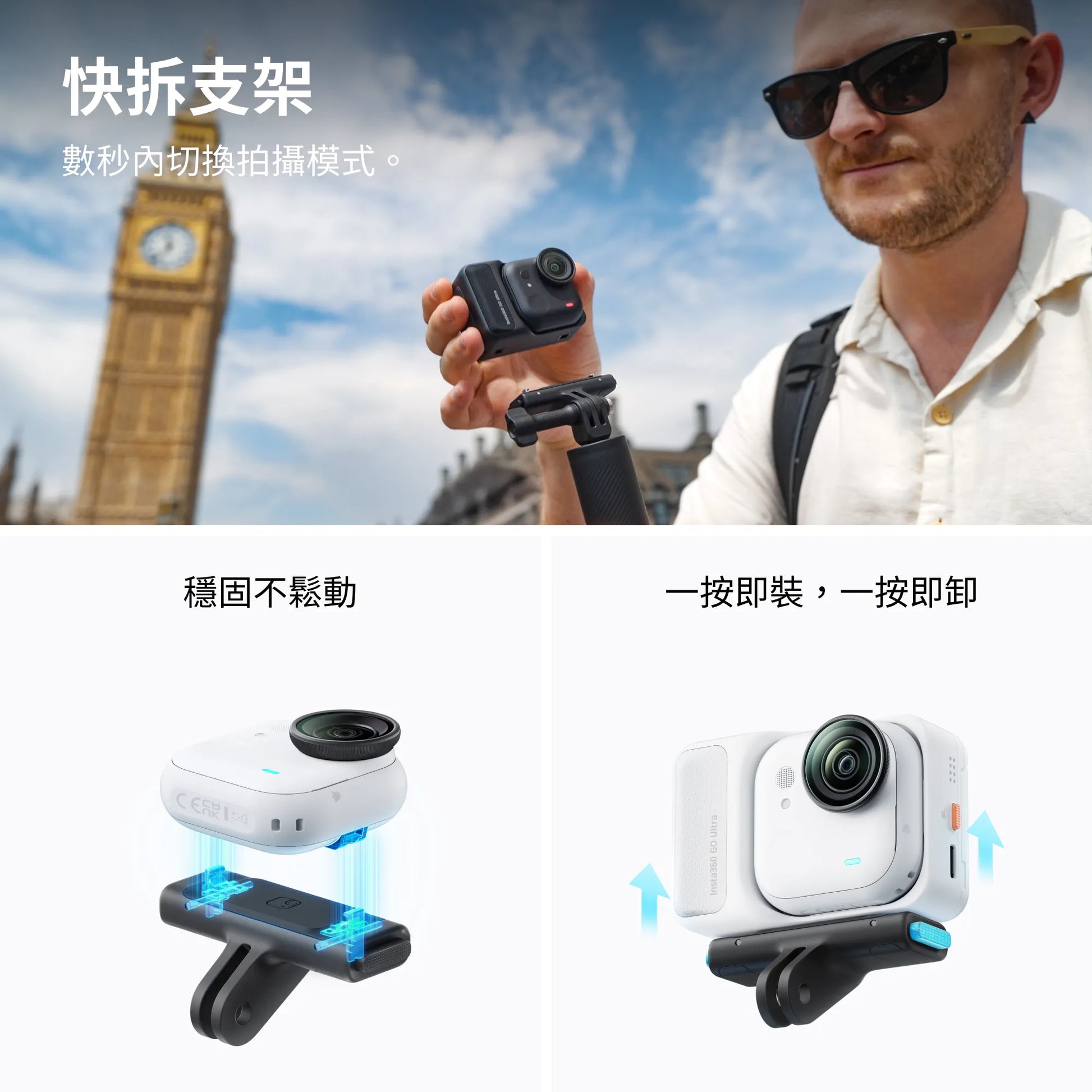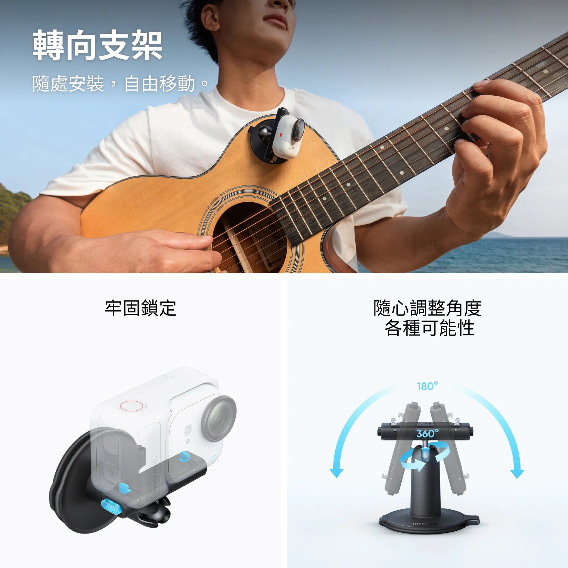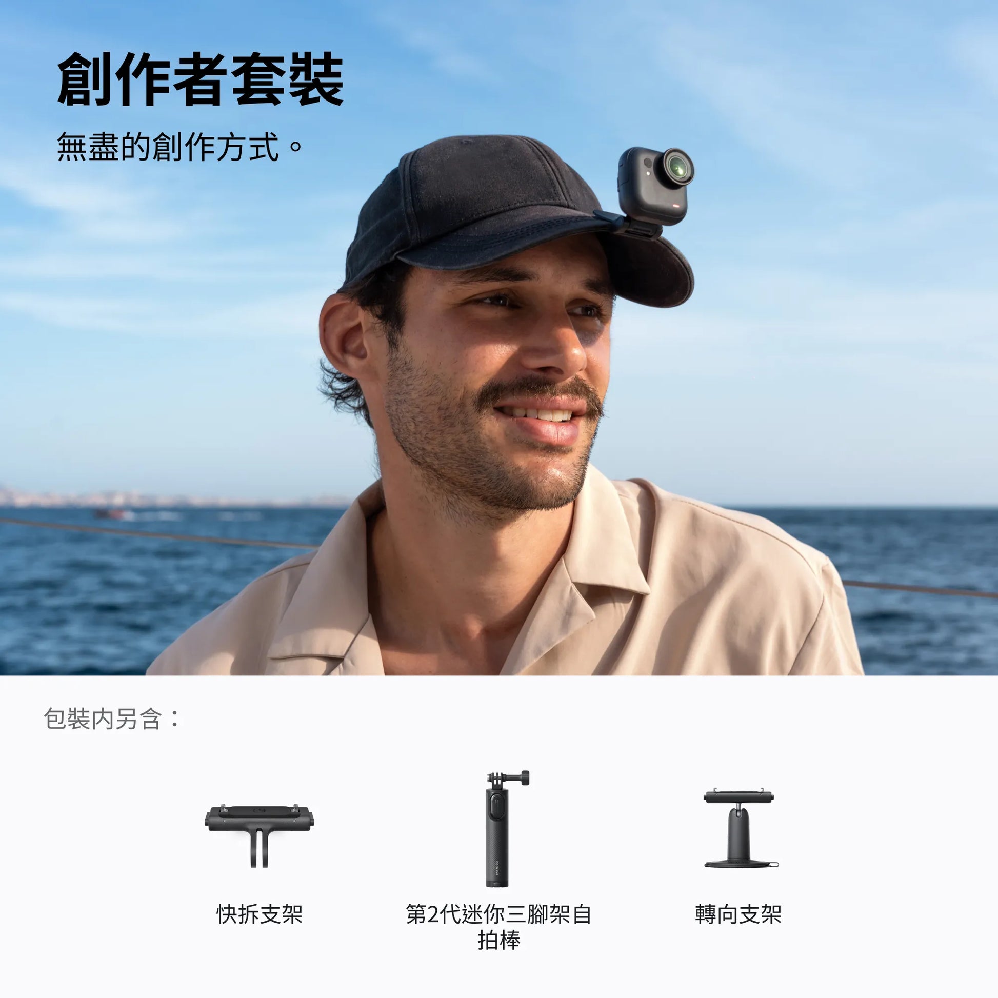 透過內建磁性安裝點與多樣配件,靈感湧現時隨處安裝相機。
