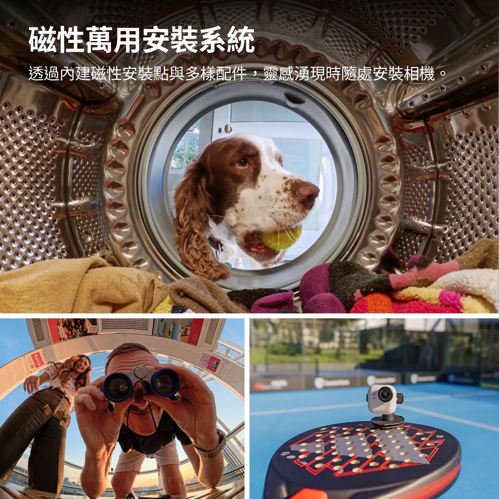 透過磁吸掛繩或磁性簡易夾安裝,輕鬆以你的視角捕捉世界。